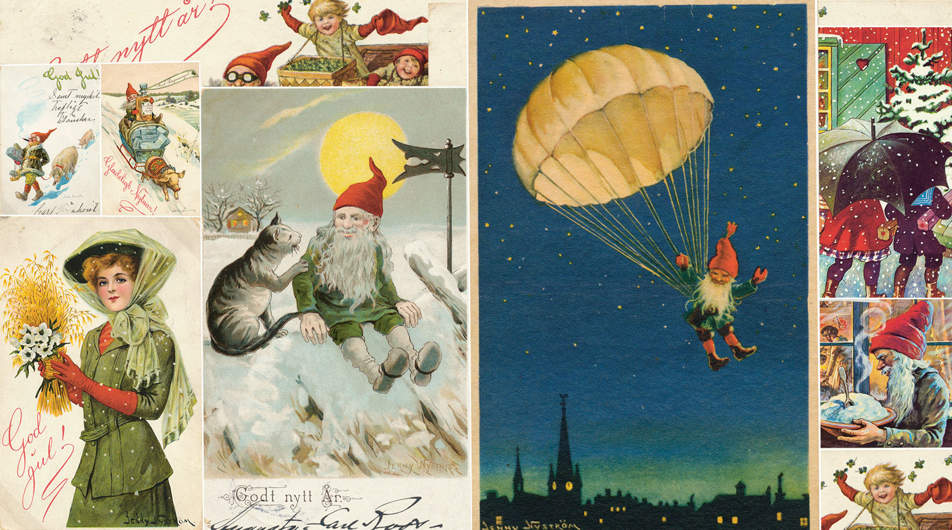 Många håller nog med om att det inte blir så mycket juligare än ett julkort med motiv av Jenny Nyström. Jo, visst hann hon under sitt långa och produktiva liv, 1854-1946, med så mycket mer än bara julillustrationer – det var barnböcker, bokomslag, tidningar, almanackor, akvareller och oljemålningar. Men den moderna, svenska tomten kommer hon för alltid att förknippas med.